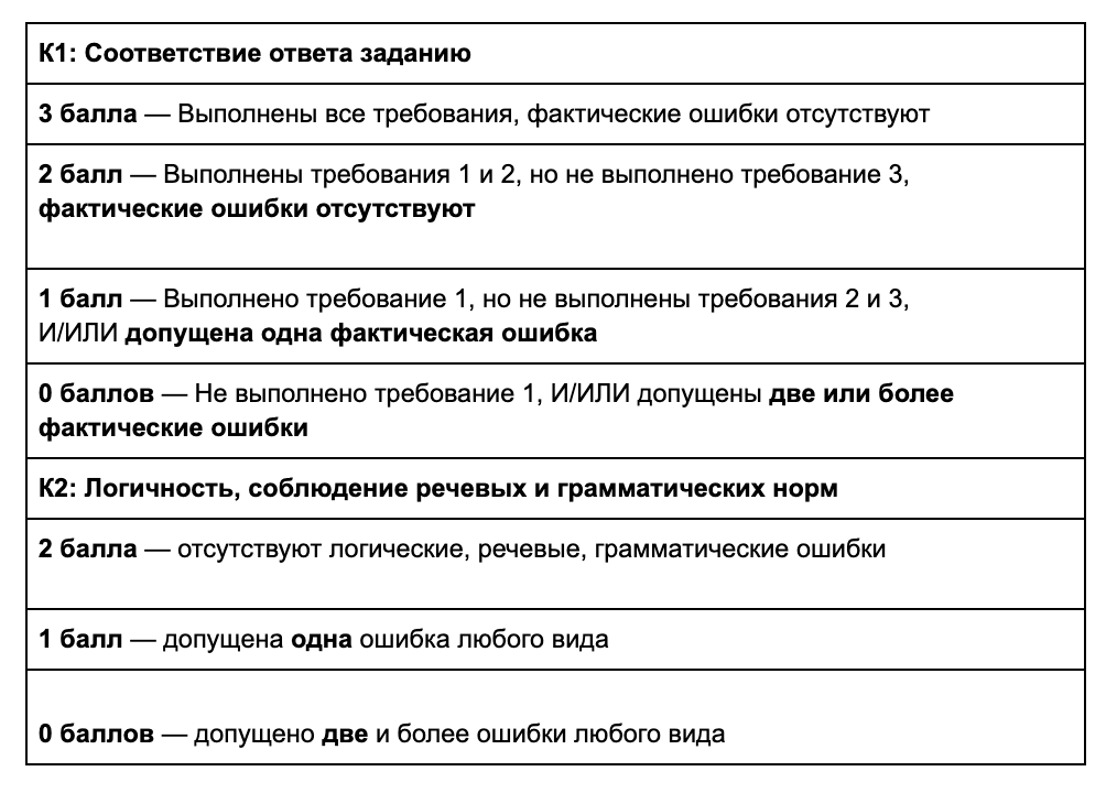 - Если по критерию К1 выставлено 0 баллов, то задание считается невыполненным и по критериям К2 и К3 ответ оценивается 0 баллов.